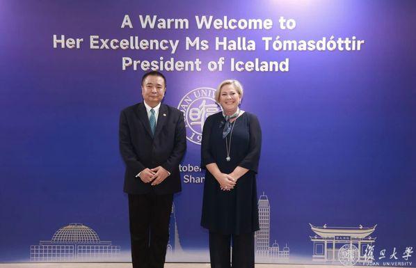 “感谢复旦让我此行的最后一晚如此特别!”10月17日晚,冰岛总统哈德拉·托马斯多蒂尔(Halla Tómasdóttir)访问复旦大学,在冰岛驻华大使易卜雷(Thórir Ibsen)、中国驻冰岛大使何儒龙的陪同下,与复旦大学校长、中国科学院院士金力,副校长陈志敏会面交流,并与现场四百余名观众共同聆听了一场冰岛交响作品音乐会。