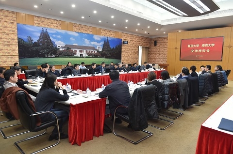1月8日上午,南京大学党委书记胡金波、校长吕建率领校党政领导班子成员来我校调研考察。校党委书记焦扬、校长许宁生对南京大学校领导一行的来访表示欢迎。