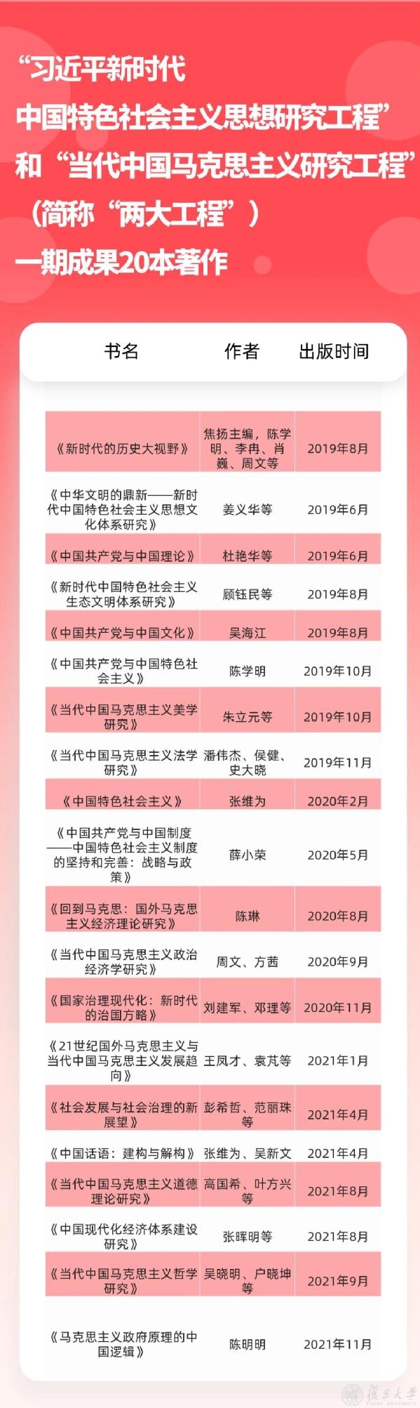 历时4年,40多名复旦专家学者领衔,近200人研究团队投身“习近平新时代中国特色社会主义思想研究工程”和“当代中国马克思主义研究工程”(下文简称“两大工程”)研究,集众智、合众力,推出20本熠熠生辉的扛鼎之作!