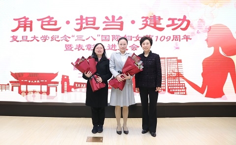 新闻中心讯 3月8日上午,复旦大学隆重举行纪念“三八”国际妇女节109周年暨先进表彰大会,大会紧紧围绕“角色·担当·建功”主题展开,通过表彰先进树典型、凝心聚力促发展,激励全校广大女性弘扬自尊、自信、自立、自强的精神,在加快建设中国特色世界一流大学、实现中华民族伟大复兴的征程中彰显巾帼之志、贡献巾帼之力。校党委书记焦扬出席会议并致辞,校党委副书记许征以及获奖代表、妇女师生代表等出席了大会。