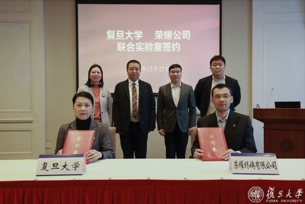 12月27日,复旦大学与荣耀在复旦大学邯郸校区举行战略合作签约仪式。复旦大学校长、中国科学院院士金力,荣耀董事长万飚出席签约仪式并讲话。复旦大学常务副校长许征、荣耀研发管理部总裁邓斌出席活动并代表双方签署战略合作协议。