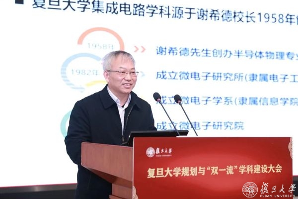 建设成为国家集成电路“基础源头创新”、“前瞻性技术攻关”、“高层次人才培养”的世界一流微电子学院。微电子学院院长张卫介绍了集成电路学科建设情况,一方面搭平台,汇聚天下英才,拥有了6个国家级创新平台,引育结合,汇聚了一大批高层次人才。另一方面“芯”征程,创建多个第一,建设了国内第一个集成电路领域国家重点实验室,孵化了国内第一家在香港上市的集成电路设计公司,国内第一个实施“集成电路科学与工程”一级学科,发表了60年来国内微电子领域第一篇Science论文,并构建了一流人才培养体系。