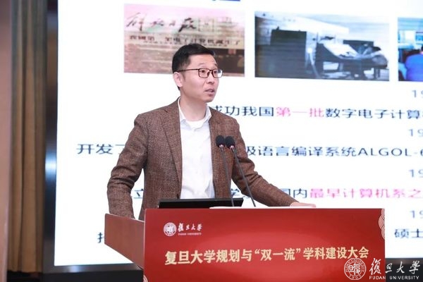 支撑“第一个复旦”建设,打造综合性大学的一流计算机学院。计算机科学技术学院院长姜育刚介绍了复旦计算机学科的发展历程:目前总体基础良好,师资方面拥有一支结构合理、实力雄厚的教师队伍,国家级人才数量快速攀升;教学方面已拥有国内一流的生源与育人基地;科研方面在顶级论文、大项目、社会贡献等方面持续稳定提升,但仍面临诸多挑战。他期待与校内各学科、各机构共建、共享、共赢,大幅提升复旦计算机学科的影响力。