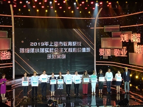 5月26日,“立德树人新时代,核心价值育新人——2019年上海市教育系统落细落小落实社会主义核心价值观主题活动”在嘉定区文化馆举行。市委副书记尹弘、副市长陈群出席活动并为上海教育系统落细落小落实核心价值观典型案例获奖单位颁奖。