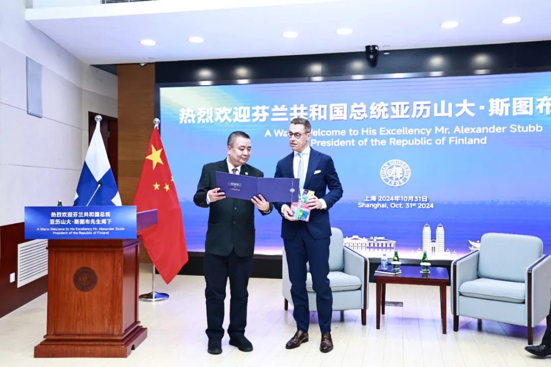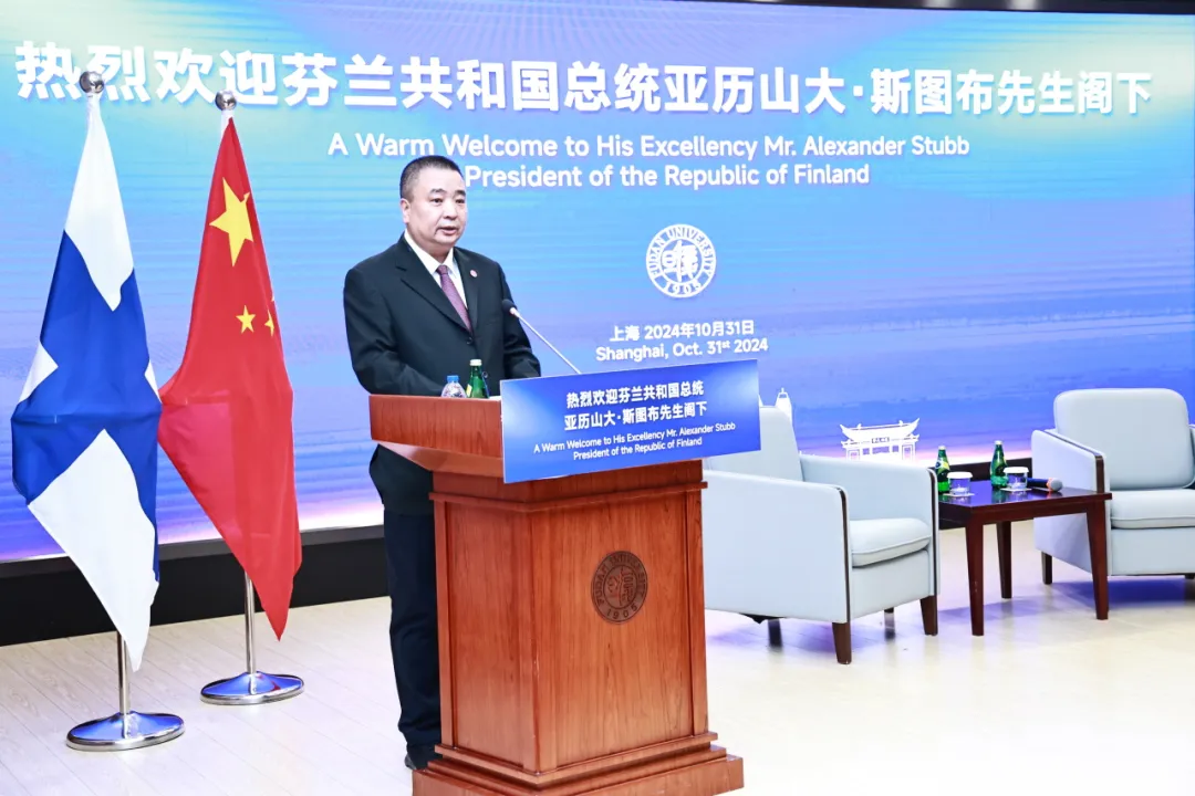 金力在致辞中表示,复旦大学与芬兰高校在教育和研究领域建立了广泛而深入的合作关系,这些合作不仅提升了两国在教育和科研领域的合作水平,也为深化双方互信和理解奠定基础。作为一所注重创新的综合性研究型大学,复旦大学一直致力于国际合作和全球参与,坚持追求学术卓越、培养未来领袖。期待斯图布总统的访问能进一步加强复旦与芬兰高校之间的学术交流与合作。