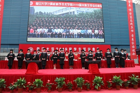 毕业纪念片奏响典礼序曲。视频中,2019届复旦学子在学术科研、公益实践、国际视野、文艺体育、志愿奉献等各方面成长历练的风采,学以报国、奋斗进取的精神风貌,引起了现场同学们的共鸣。而学校提供的各类教育环境和资源也助力着学子成长成才,不仅成为学子们美好的回忆,也为未来的征程注入动力。
