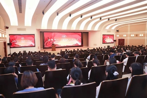 9月9日下午,复旦大学庆祝新中国成立70周年暨2019年教师节表彰大会在光华楼举行。