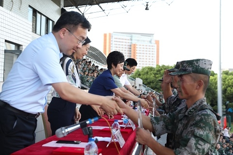 汇报大会上,此次军训中先进集体名单与先进个人名单公布,与会领导们向表现突出的先进连队和先进个人颁奖。