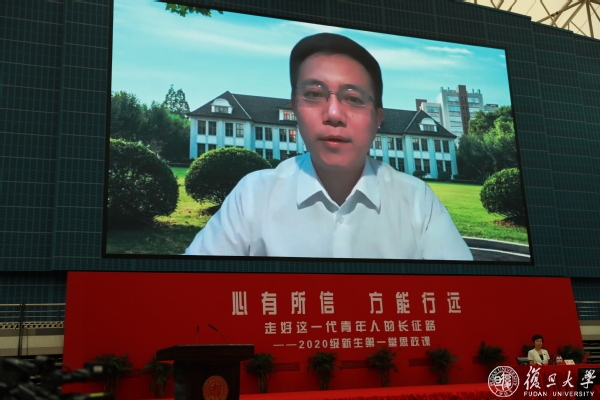 当空荡许久的正大体育馆再次迎来青春面庞,当沉寂许久的上课铃声再次响起,师生们谈论着新学期的新气象,新生们怀揣着新征程的新期待。复旦大学党委书记焦扬又一次走上讲台,为3600余名2020级新生上第一堂思政课。