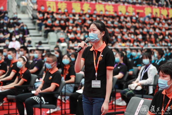 “同学们一到学校,校园就有了生机和活力,老师们也发自内心感到高兴。”在欢迎同学们加入复旦大家庭的同时,焦扬也为大家以坚强内心克服困难而点赞,并对特殊时期广大家长们的理解与配合表示感谢。当全场齐声高喊出“复旦人”三个字时,她告诉大家:“这是大家共同的名字、身份,共同的精神密码。”
